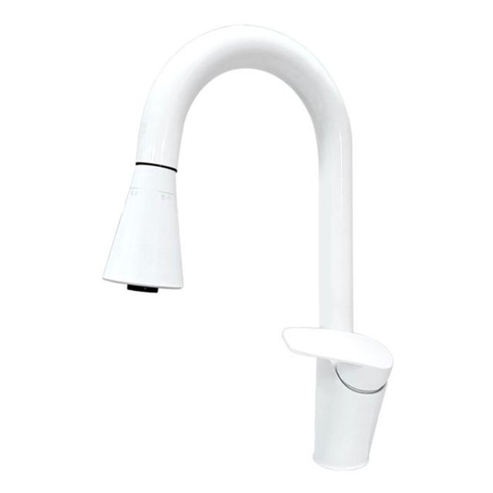엄지척 화이트 파이프 거위목 원홀 주방수전 수도꼭지