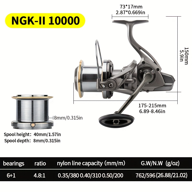 TEMU 루어 낚시릴, 롱캐스팅 스피닝휠 8000-14000 42 LB 최대드래그, Metal Baitcast 4.8.1:1 고기어비율, 민물·바닷물용