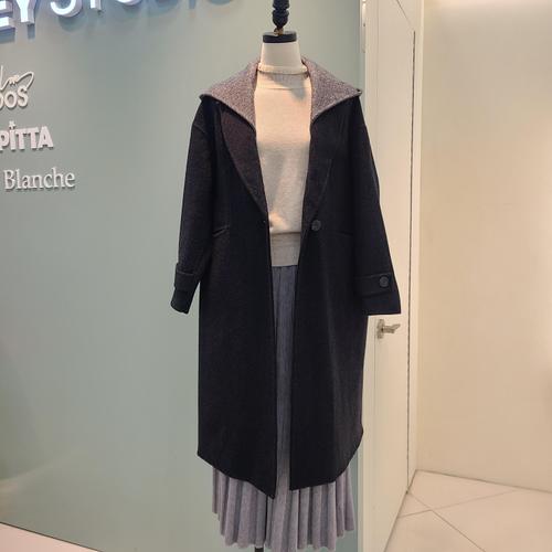 [수스]탈착후드배색 루즈핏 코트 S254NCOB04 /다크그레이,오토밀
