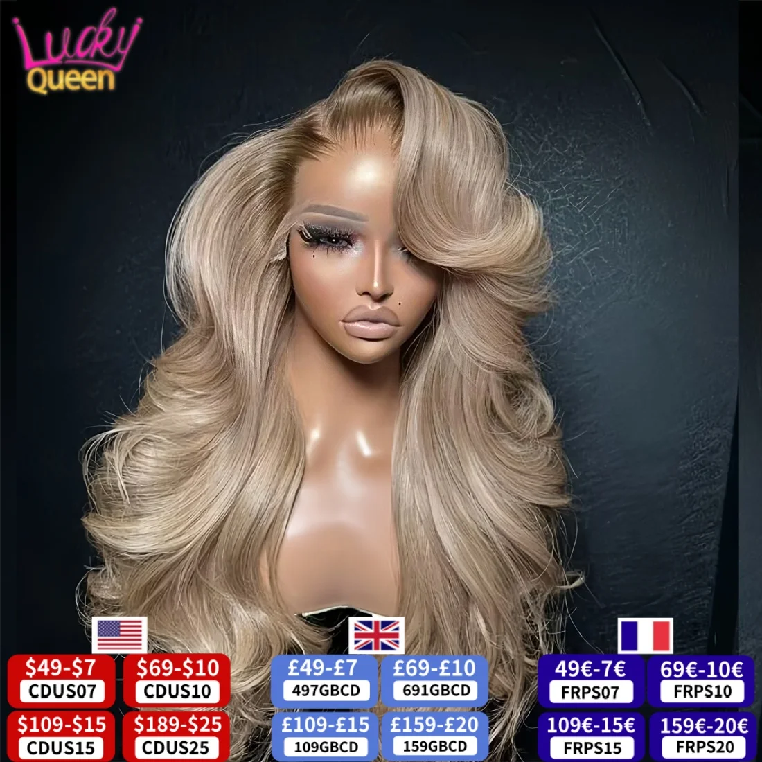 옹 브르 블론드 13X4 투명 레이스 프론트 인간의 머리 가발 브라운 루트 바디 웨이브 애쉬 블론드 5X5 클로저 가발 Pre Plucked