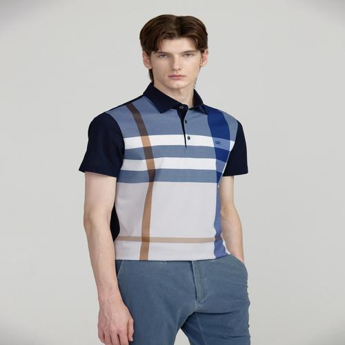 닥스 남성 네이비 체크 면혼방 반팔카라티셔츠 (DMTS5BC01N2)