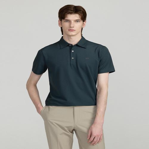 닥스 남성 [COOL TOUCH] 다크그린 조직감 솔리드 반팔 카라 티셔츠 (DMTS5BN04E3)