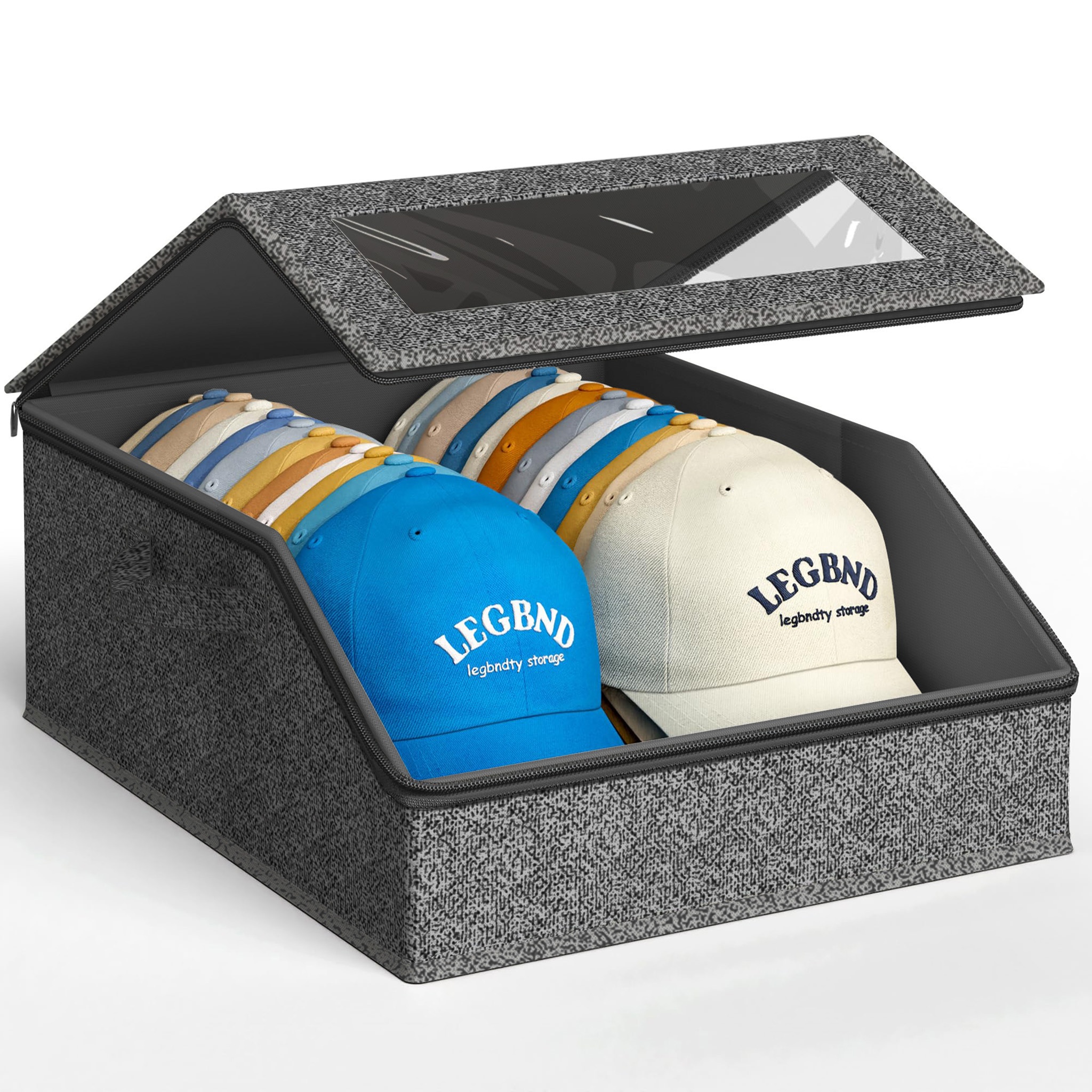 TEMU 1개 튼튼한 야구모 보관함, 최대 24개 모자 수납 가능 - 남녀공용 야구모, 썬햇, 와이드 브림 모자, 플랫 브림 모자, 소프트 브림 모자, 페도라, 선바이저, 골프캡, 트럭커캡 등을 위한 투명 모자 정리함 - 편리한 사이드 핸들 장착, 침실, 거실, 기숙사, 차 트렁크에 이상적