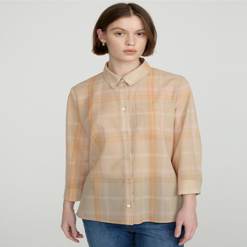 닥스 여성 [스테디셀러]베이지 체크 울 혼방 긴소매 셔츠 (WKSH5BE21I2)