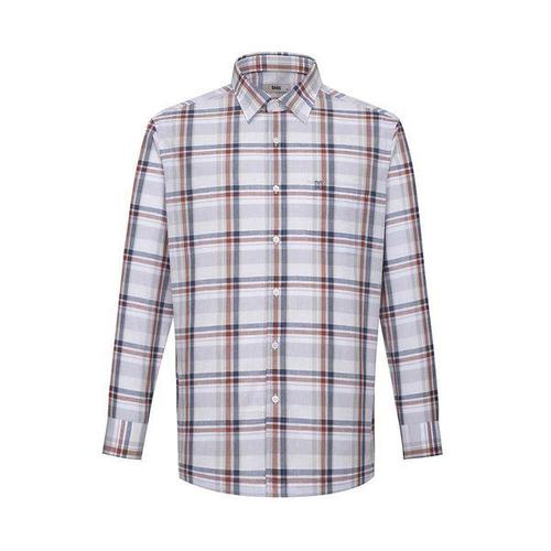 [닥스셔츠]린넨혼방 미듐체크 셔츠 레귤러핏 브라운
