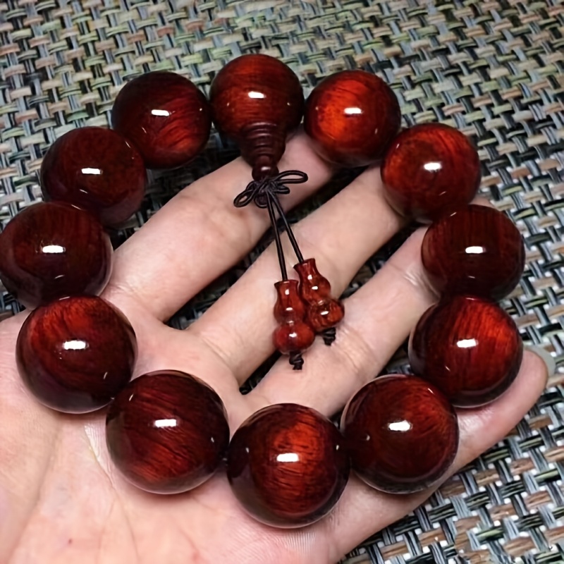 TEMU 빈티지 스타일 고밀도 보라색 샌달우드 비즈 팔찌 - 남녀공용 목재 기도 비즈, 복잡한 조각, 내구성 및 스타일리시, 영적 액세서리|빈티지 스타일 비즈|세밀한 조각, 팔찌용 목재 비즈