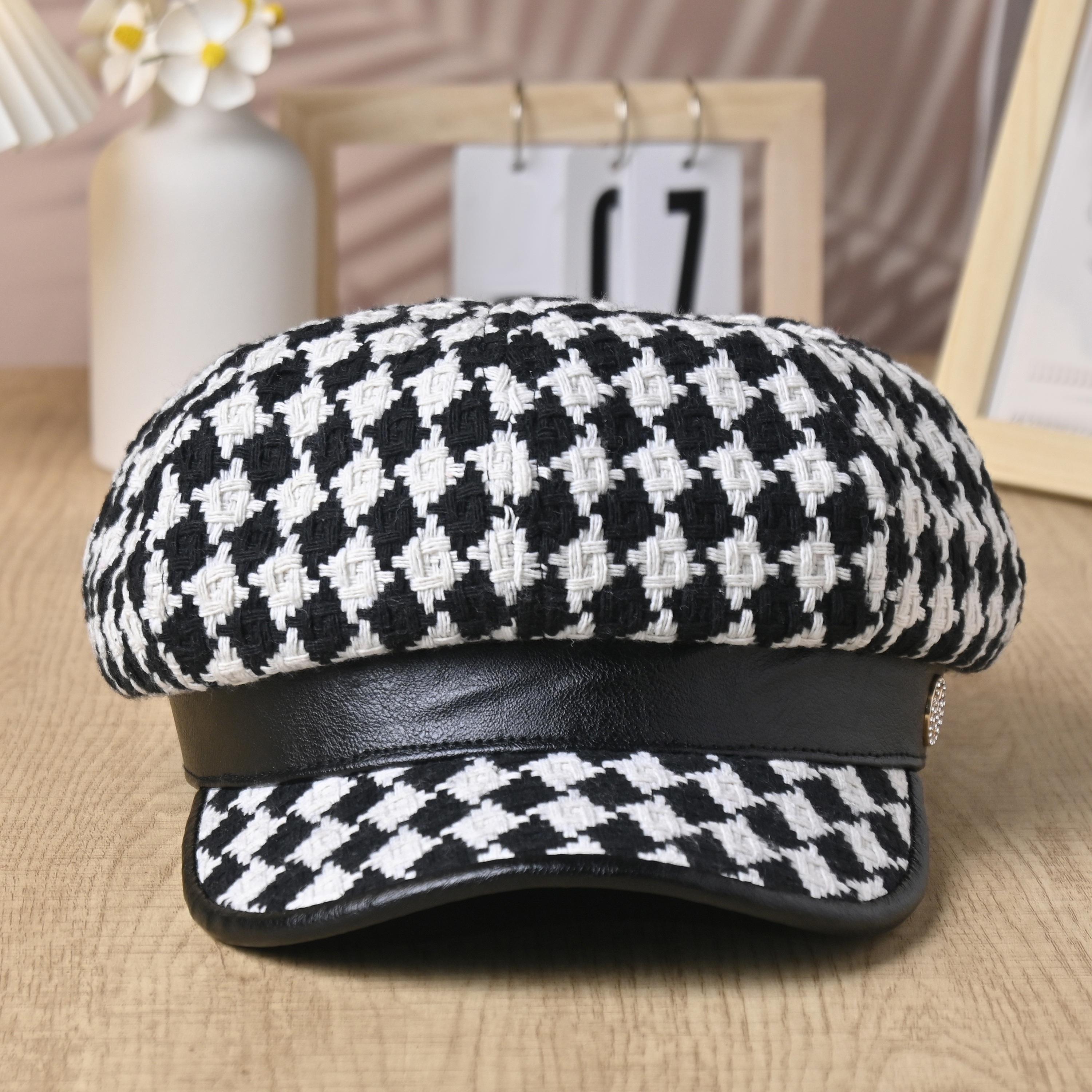 TEMU 가을/겨울 클래식 체크무늬 뉴스보이 캡, 빈티지 패션, 클래식 엘레강스 스타일 모자