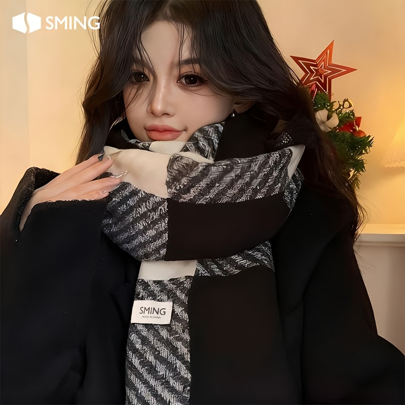 TEMU 1개, 성명 체크무늬 스카프 여성용, 2025 신상 고급스러운 디자인, 다용도 겨울용 두꺼운 보온 방풍 어깨 보호대, 크리스마스 휴일 선물로 이상적