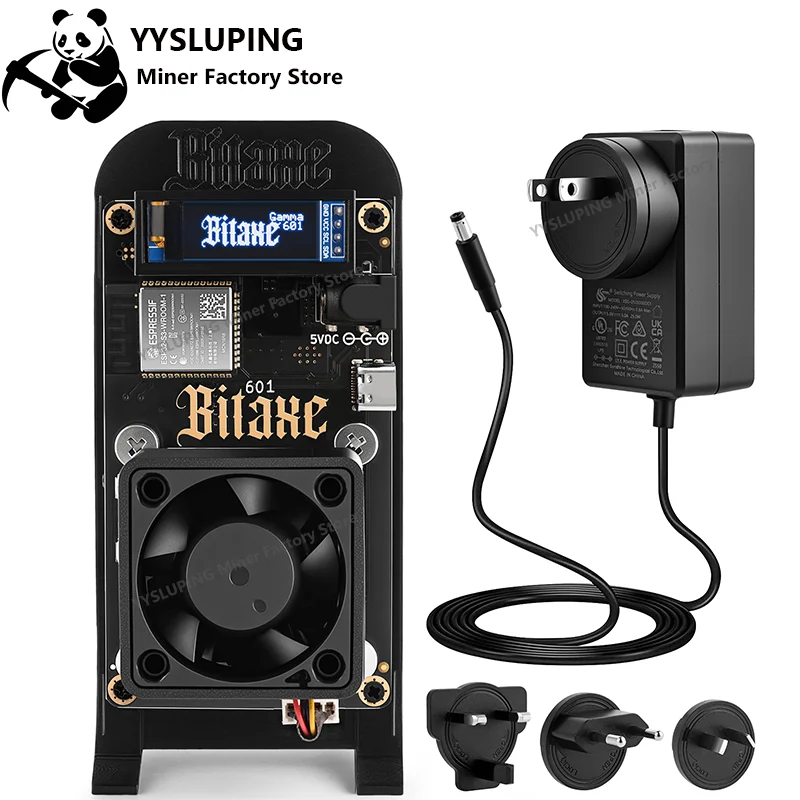 비트액스 감마 601 BM1370 오픈 소스 1.2TH/S 해시레이트 비트코인 채굴기, 2.4G 와이파이 저전력 18W 솔로 BTC 채굴기(PSU 포함)