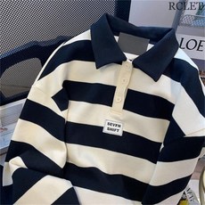 RCLET 남자 스트라이프 맨투맨 빅사이즈 긴팔 티셔츠 오버핏 롱티 데일리 긴팔티 봄가을 캐주얼