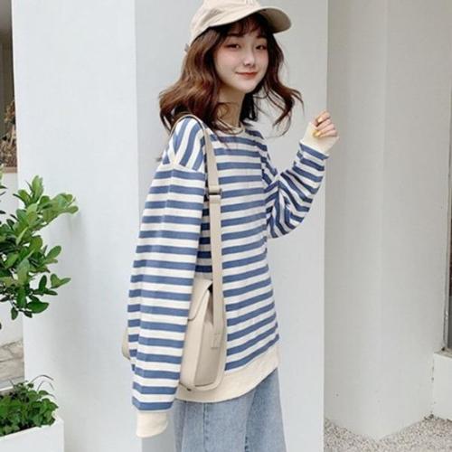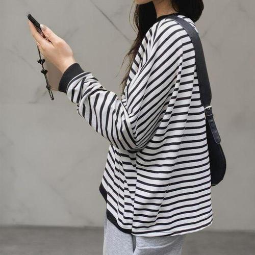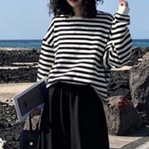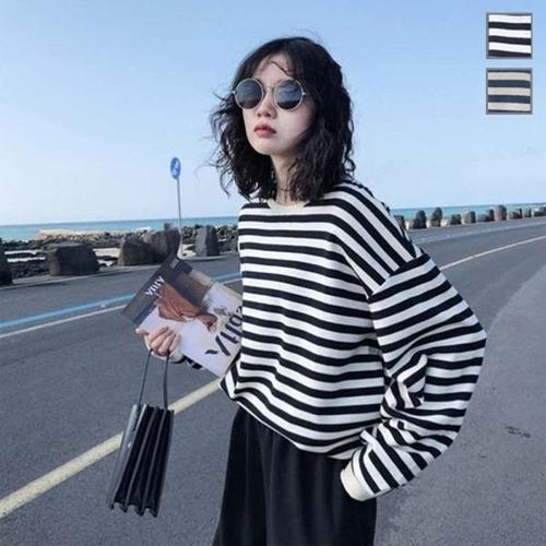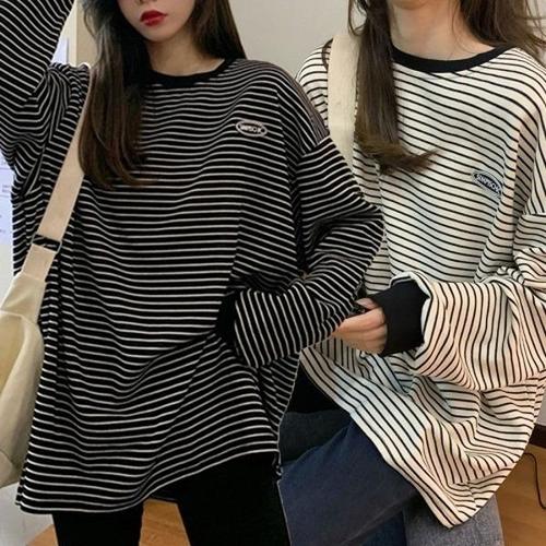 [엄지척]여성 루즈핏 스트라이프 줄무늬 긴팔 맨투맨 티_19626919_667501