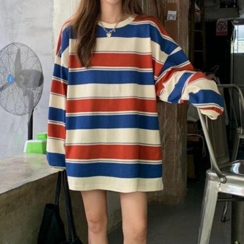 [엄지척]루즈핏 여성 티셔츠 스트라이프 맨투맨 티셔츠_19629546_667501