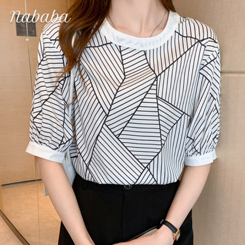 나바바 / NT244 프린팅 불규칙 스트라이프 반팔 티셔츠