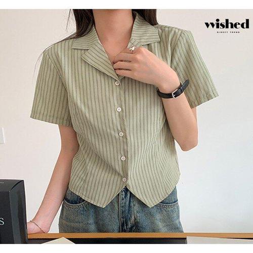 [위시드]카라넥 세로 스트라이프 반팔 셔츠 (WIAABL173)