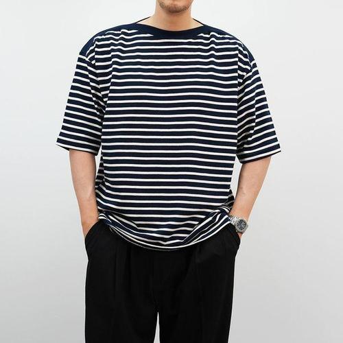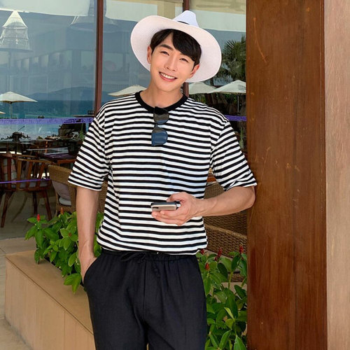 [옷자락] 남성 배색 스트라이프 코튼 반팔 티셔츠 여름용
