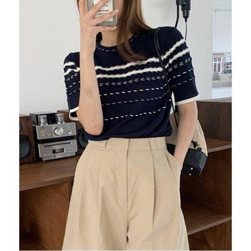 여름티셔츠 캐주얼 가 스트라이프 니트 반팔