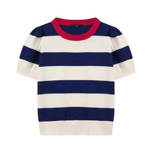 [위시드]스티치 단가라 배색 여름 반팔 니트 (WIAANT099)