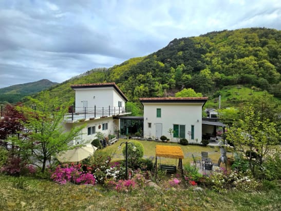 계곡&산 뷰, 객실 앞 테라스, 개별 바베큐장, 탁구장, 커플,가족,단체 객실.