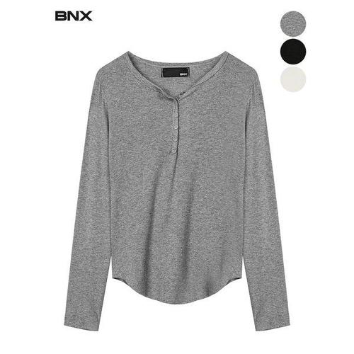 [BNX]여성 단추 골지 긴팔 티셔츠