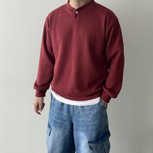 [모노폴로지]어깨넓어보이는 부드러운 골지 헨리넥니트 버튼 니트 긴팔 라운드 맨투맨 티셔츠 6color