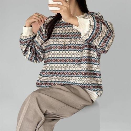 [다잇템][다잇템] 여성 빅사이즈 FW 골지 버튼 숄더 보트넥 패턴 티셔츠_23704997_588872