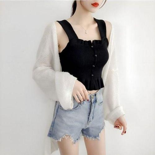 골지 크롭나시 크롭 버튼 여름 탑 버튼디테일 WFKPDGV