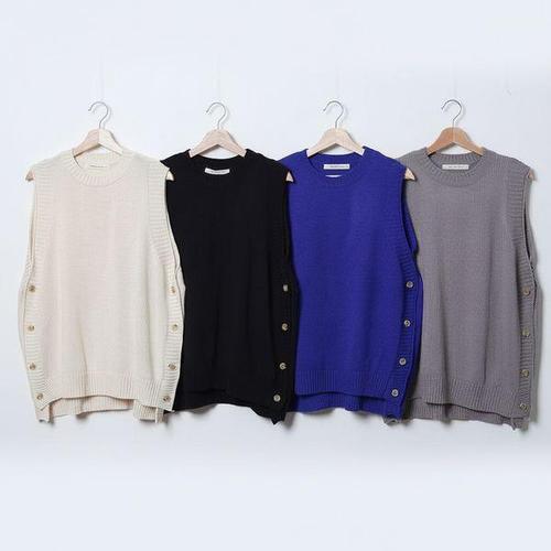 [신상오픈런]여성 박시핏 니트 조끼 라운드넥 커버업 옆단추 무지 스타일