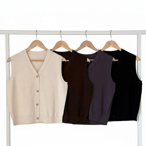 [신상오픈런]여성용 봄철 브이넥 버튼 니트 조끼 기본핏 출근 스타일