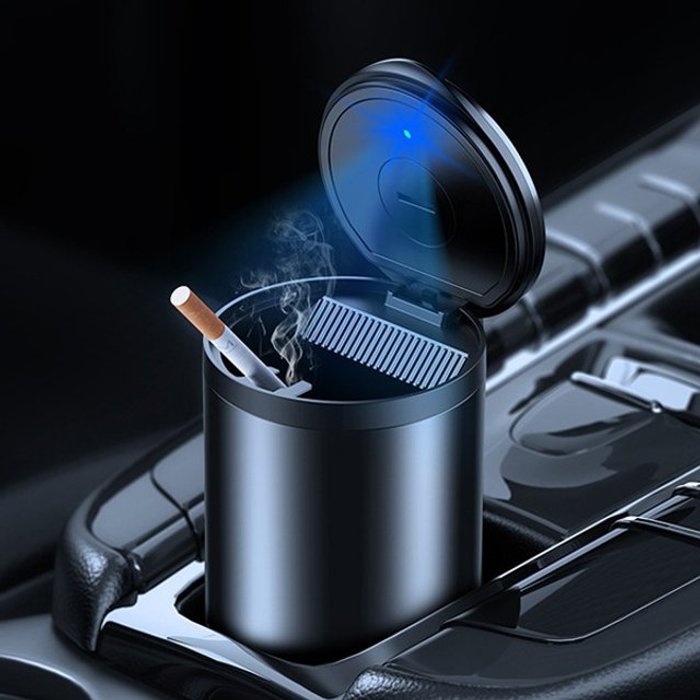 차량용 원터치 LED 재떨이 담배 냄새 차단 멀티 휴지통 컵홀더 쓰레기통 차량용컵