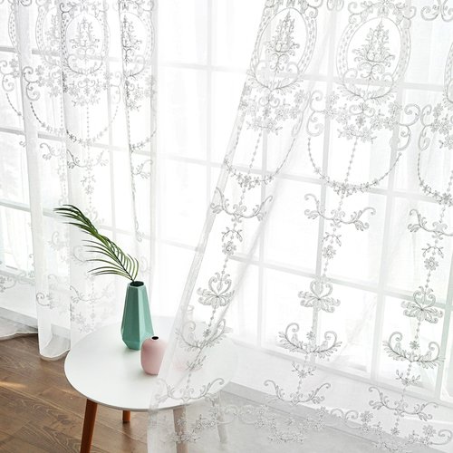 TEMU 비즈 레이스 트림이 있는 시크한 플로럴 시스루 커튼 - 주방, 침실, 공부방, 카페 및 거실 장식에 완벽함