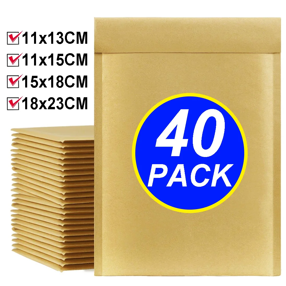 4가지 크기 10-40개 버블 봉투 택배 보관 가방 크라프트 버블 봉투 종이 포장 가방 패딩 메일러 배송 패키지