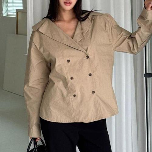 [HYIJCUE1_4B]더블단추블라우스 친구 오피스 룩 모임 패션