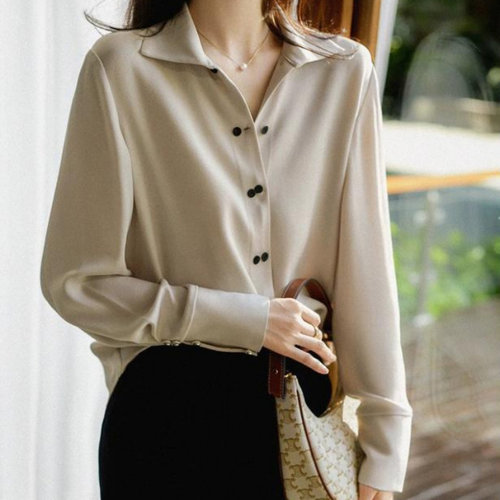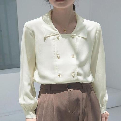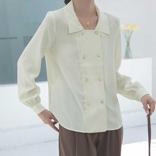 [신상오픈런]다페리 비즈펄 버튼 더블 블라우스 여성 사무실 새틴