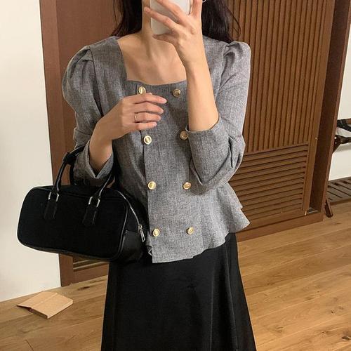 여자 더블버튼 스퀘어 핀턱 블라우스