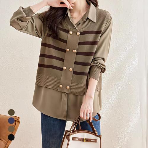 [패션시그널]더블버튼라인 셔츠블라우스 39B125