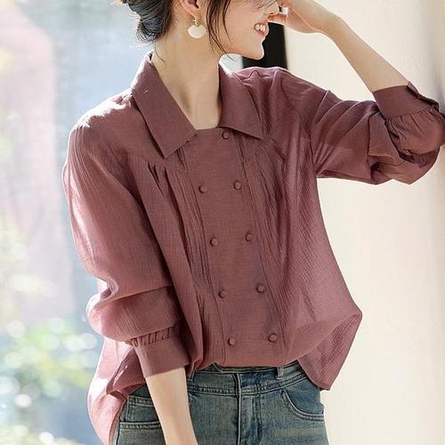 [신상오픈런]여성 더블 버튼 긴팔 플레어 스트랩 박시 블라우스