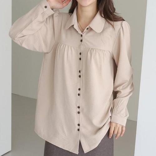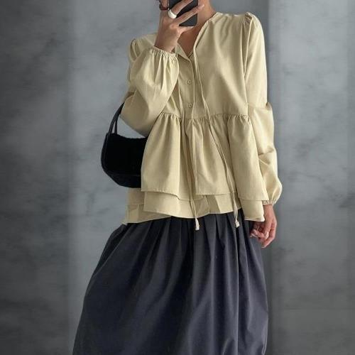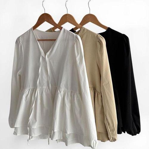 [옷자락]여자 박시핏 더블 플레어 스트랩 긴팔 버튼 블라우스