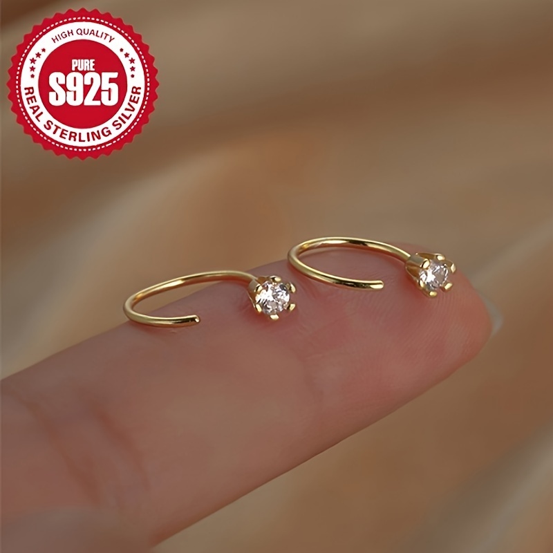 TEMU 1 쌍 여성 패션 귀걸이, S925 실버, 미니 귀여운, 14K 금 도금, 합성 지르코니아, 심플, 0.5g, 저자극성, 일상, 휴가용