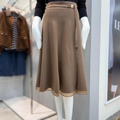 [더틸버리]헴 시스루배색 플레어 스커트MTRAM0SK51W_DG