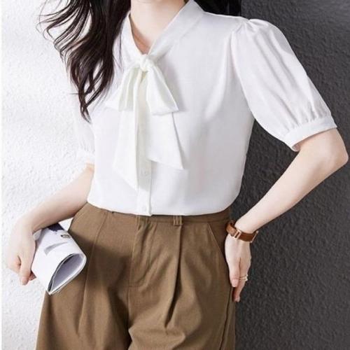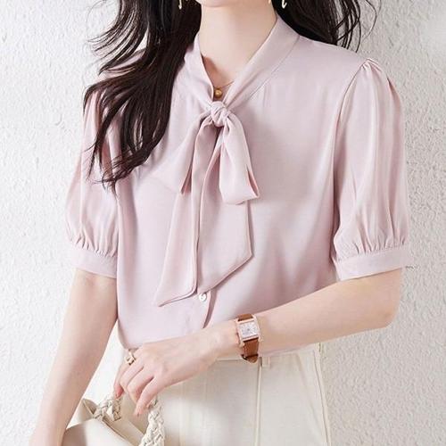 [엄지척]반팔 새틴 넥 스트링 리본 베이직 직장인_19649966_667501