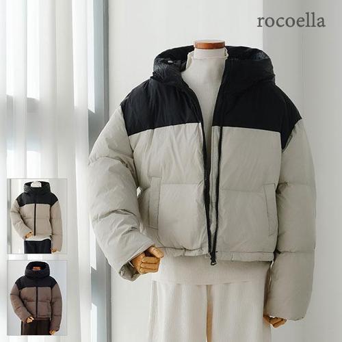 [로코엘라] 큐브 배색 덕다운 여성 숏패딩