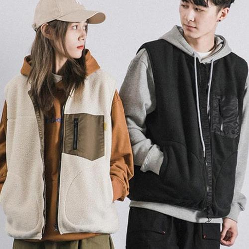 [다잇템]여자 플리스 조각 투컬러 덤블 조끼 남자 조끼 (10592587A)