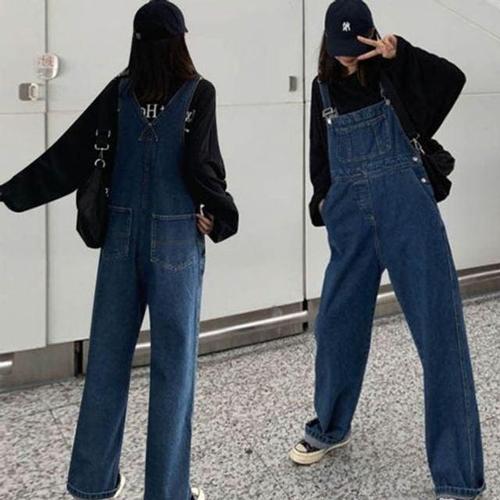 [에이치플러스몰]여성 멜빵 와이드핏 데님 점프수트 트렌디한 스타일