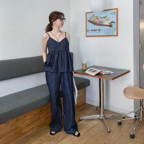 [신상오픈런]여자 키치무드 코튼 데님 어깨끈 캉캉 나시티
