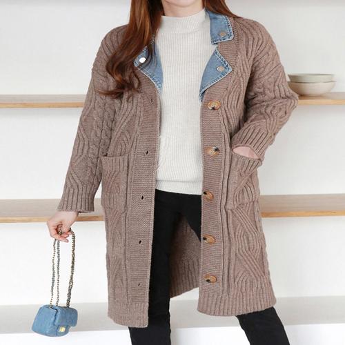 [모리스커밍홈]데님카라 꽈배기 롱 단추 가디건_M2512CD625D