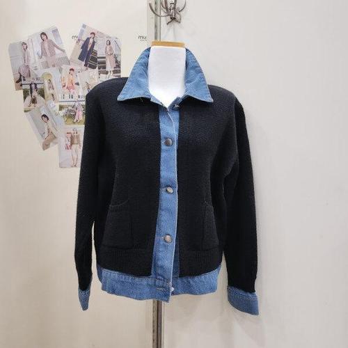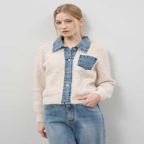 [크로커다일레이디]데님 배색 풀오버 가디건