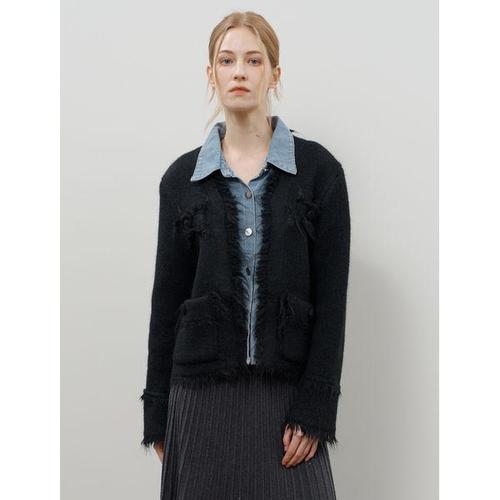 [탱커스]데님 레이어드 페이크 포켓 스냅 단추 프린지 가디건 (TX4CD015L0)
