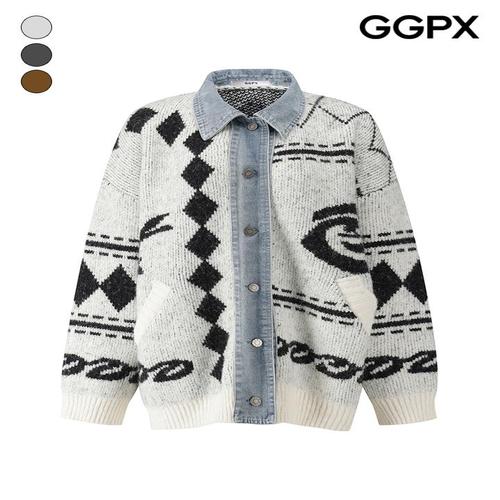 [GGPX]데님 카라 배색 패턴 짜임 가디건 (GPBKG035F)