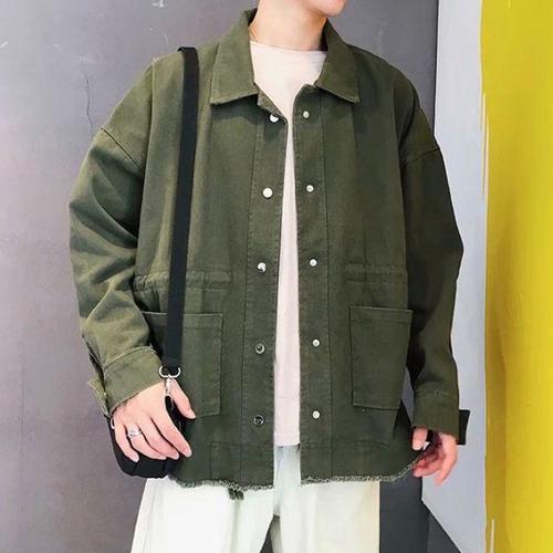 SMOPIG 남성데님셔츠 워싱 춘추 긴 소매 투 포켓 카고 데님 널찍하다 그러데이션