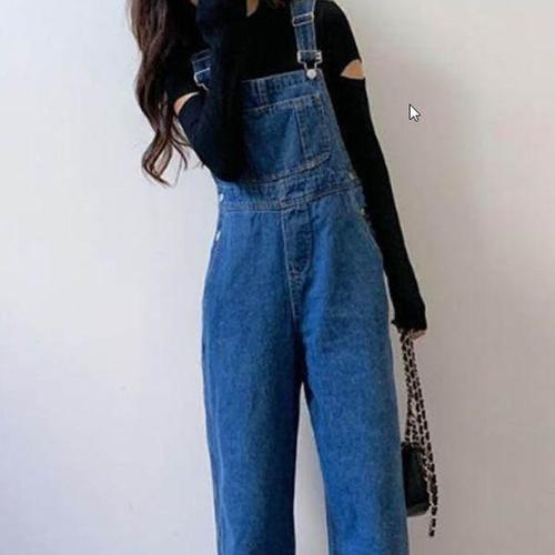 [에이치플러스몰]여성 멜빵 와이드핏 데님 점프수트 트렌디한 스타일